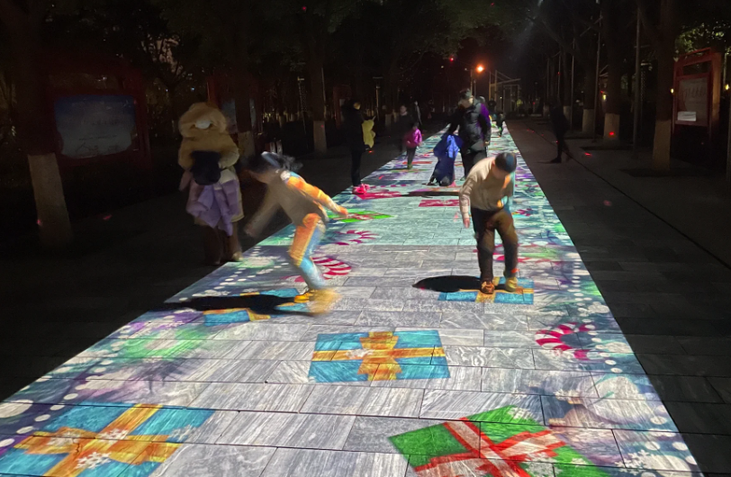 正是因为以上各技术的共同实现,使地面互动投影不仅具备了新奇性和观赏性,也拥有了强大的互动性,能让观众参与其中,体验到与传统互动完全不同的乐趣,以此为广场、游乐园、景区等公共领域,打造出热门的场景和宣传话题。