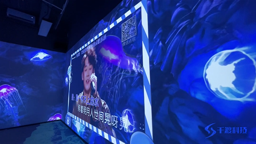 全息投影打造的沉浸式KTV,就能帮您解决装修问题。只需要几面白墙,就能以很低的成本,搭建出不同主题的场景,画面可以随着顾客的选择而一秒切换,不会产生额外的装修成本。它让顾客不仅得到听觉的享受,也在视觉上得到了沉浸式体验。