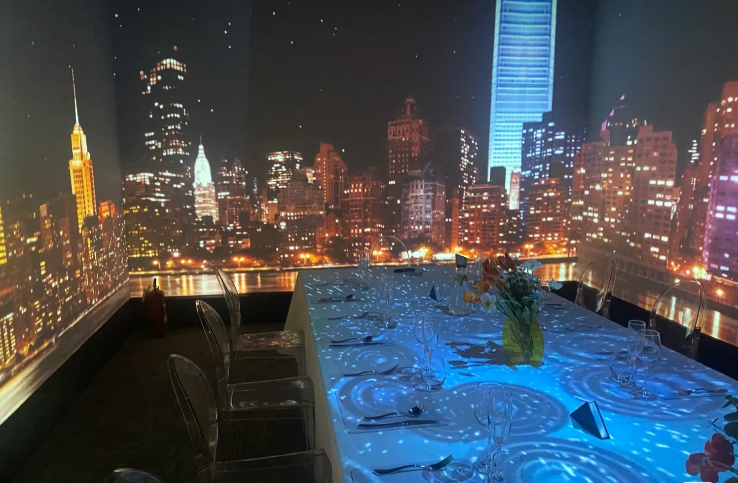 氛围营造:投影技术可以根据餐厅的主题和氛围需求,创造出不同的光影效果,如森林、花海、星空等自然风景,或古老的城堡、神秘的庙宇等历史场景,为用餐增添一份文化底蕴和历史厚重感。