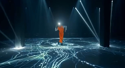 当人们走过投影区域时,感应器会对人的动作进行捕捉、拍摄处理,地面上相应的影像就会发生变化,由数据结合实时影像互动系统的交互,达到一种人机互动的效果。