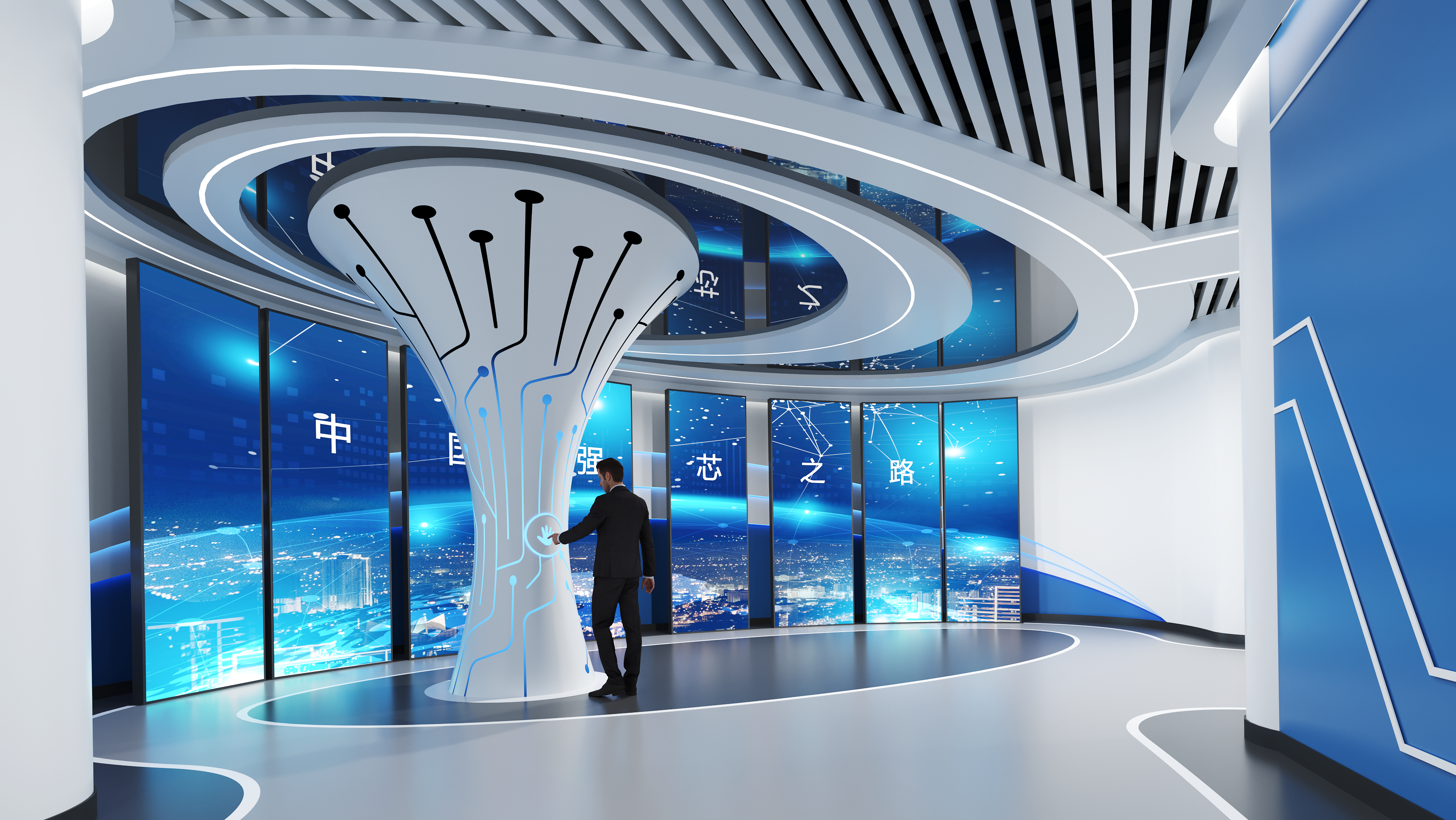 在空间设计中,现代装饰材料和设备的运用也至关重要。LED显示屏、触摸屏、智能灯光系统等,不仅增强了展厅的科技氛围,还能通过灯光和色彩的变化,引导观众的情绪和注意力