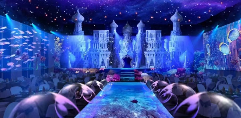 传统酒店宴会厅展现形式单一,只能通过背景素材来营造氛围感,一旦想改变风格,装修成本就很高。