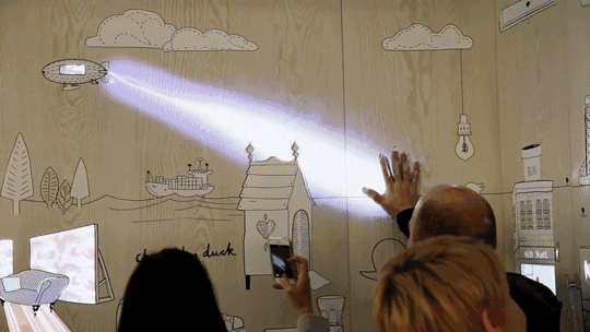 案例:博物馆儿童区触摸墙触发恐龙化石复活动画。