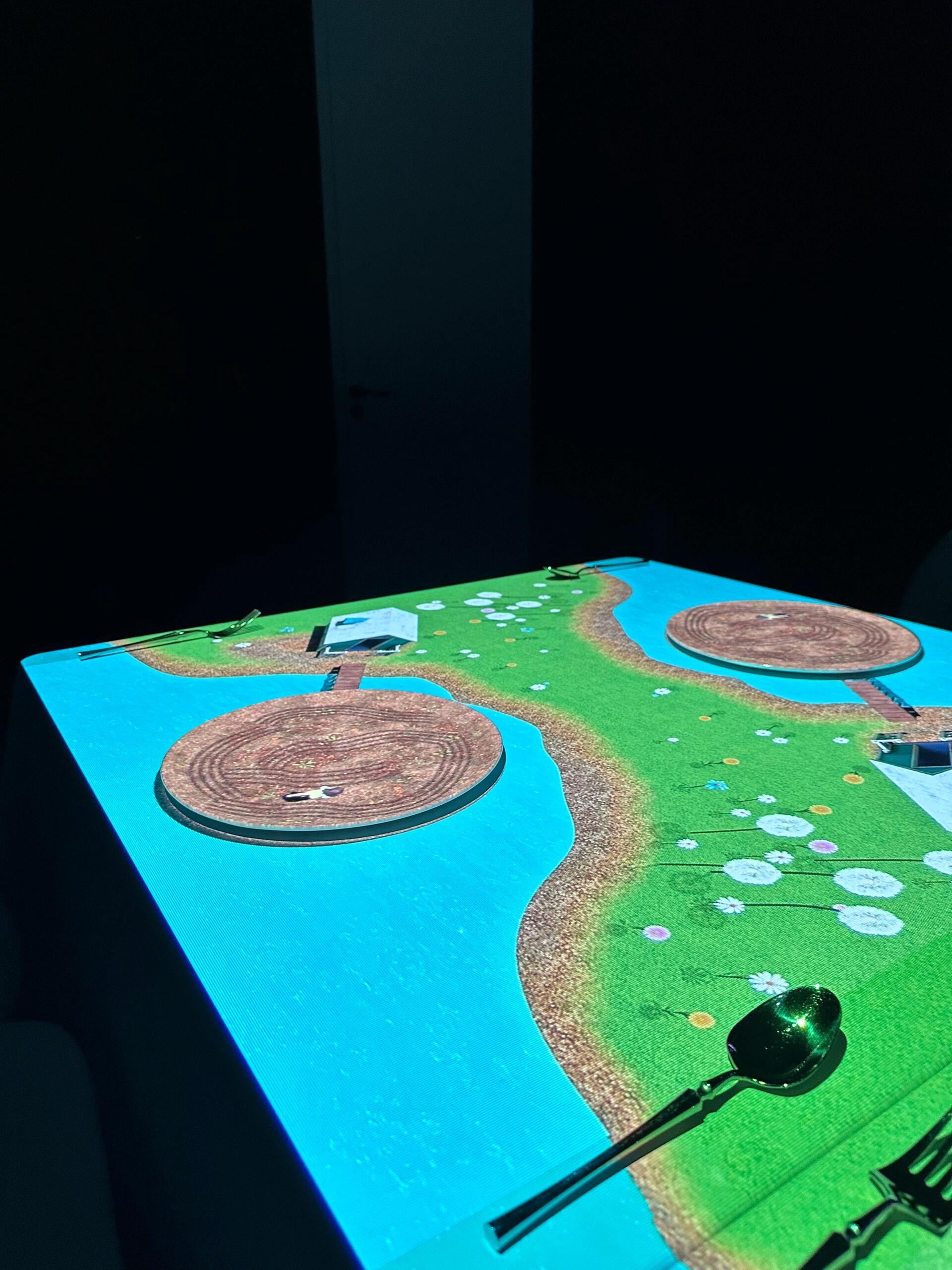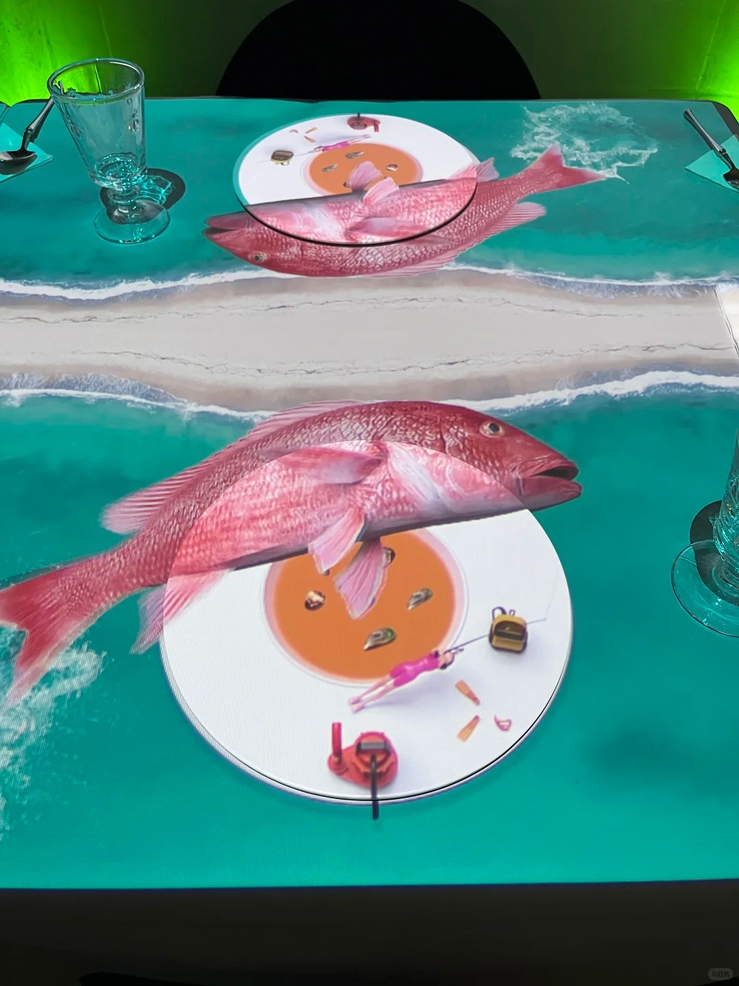 菜品故事化:上菜时,盘边投影出食材的生长环境、厨师的烹饪过程,或是与菜品文化背景相关的动态画面(如一道日料旁飘落的樱花)。