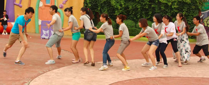 通过童年游戏-老鹰捉小鸡让整个团队迅速的融合到一起,消除彼此之间的陌生感,通过积极的跑动,让参与的小伙伴充分的活动身体关节,达到热身、预防运动损伤的目的,同时也让小伙伴们开始渐渐返回到童年的时光。