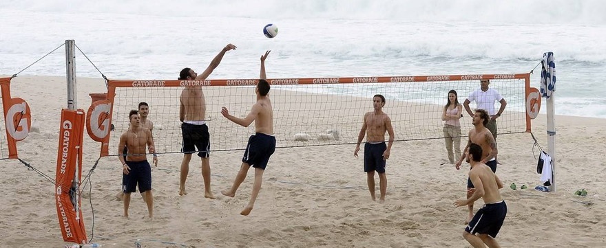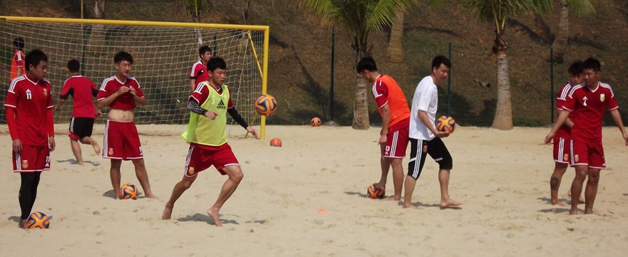 在沙滩上快速的跑动,积极的进攻防守,相互之间密切的配合,场边拉拉队员美妙的舞蹈和响亮的加油声共同构成沙滩足球比赛的美妙画面。比赛虽然有竞争,但是更多的是欢声笑语、团队协作。